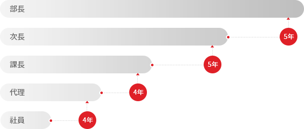 賞与 | 職級別の固定賞与金を支給 | 基本給与の150% (毎年50%引き上げ、最大350%) |